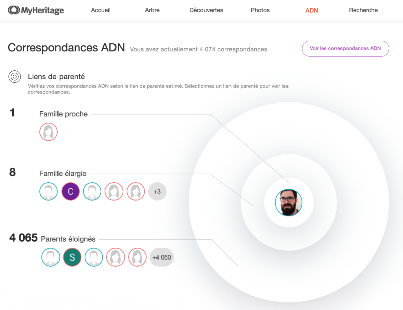 Un test ADN autosomal ne vous donnera pas le nom de vos parents. Il va comparer votre ADN à celui de millions d'autres personnes dans une base de données. S'il trouve une correspondance, il vous indiquera que cette personne est un(e) cousin(e) éloigné(e) et vous donnera une estimation de votre lien de parenté (ex: cousin au 3ème degré).